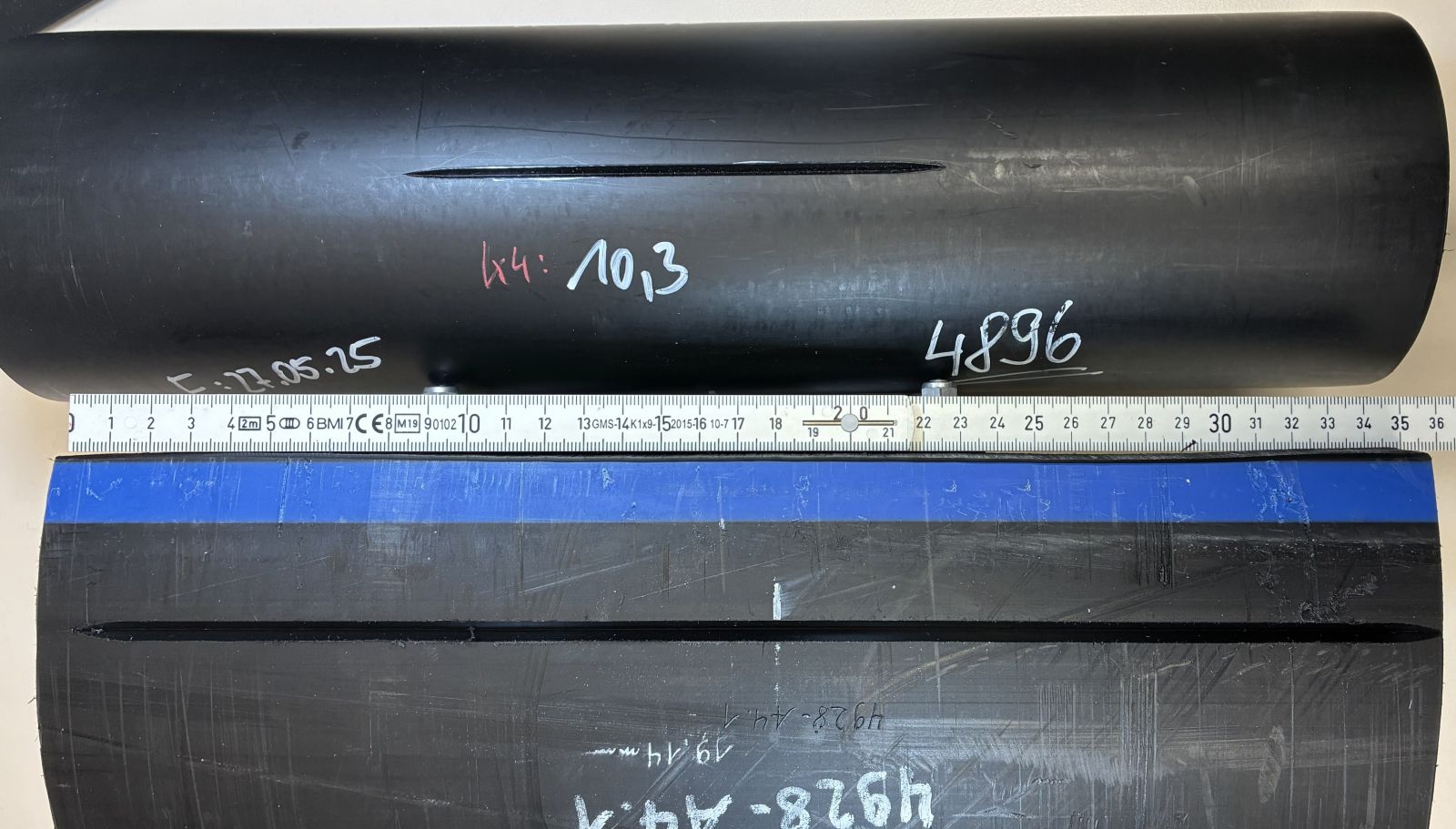 The Notched Pipe Test performed on pipes with an outside diameter (OD) of 315 mm is uncommon but feasible. Owing to the size of the test specimens, the preparation of standard-compliant notches, the pressure-tight sealing of the specimens and the immersion in the test liquid represent significant technical challenges.